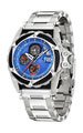 Model: Festina Watch - Festina Men's Road Warrior Chronograph Watch 16273/6 Case material: Stainless steel case with accented carbon fiber bezel Case dimensions: 46mm (1 13/16") in diameter not including the crown; 14mm (9/16") in thickness Weight: 7.9 oz Movement: Quartz movement Crystal type: Scratch resistant mineral crystal Crown: Push and pull crown Water resistant: 100 meters (330 feet) Face color: Light blue dial Lug size: 25mm Band type: Solid stainless steel watch band with fold over safety clasp with push button Band length: Will fit 5 1/2 - 8 1/2" wrist Additional features: Chronograph functions; Luminous hands and markers; Date display Warranty: 1 year manufacturer's warranty on all Festina watches Packaging: Comes in original Festina watch gift box with warranty paper and owner's manual